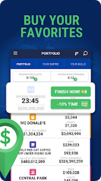Gra ma bardzo intuicyjny interfejs, który pozwala łatwo i szybko zarządzać wszystkimi różnymi aspektami gry. Możesz zobaczyć wszystkie różne budynki w mieście i możesz użyć GPS, aby zlokalizować jeden z nich. Wszystkie różne budynki mają swoje unikalne cechy i od ciebie zależy, którym z nich chcesz zarządzać.